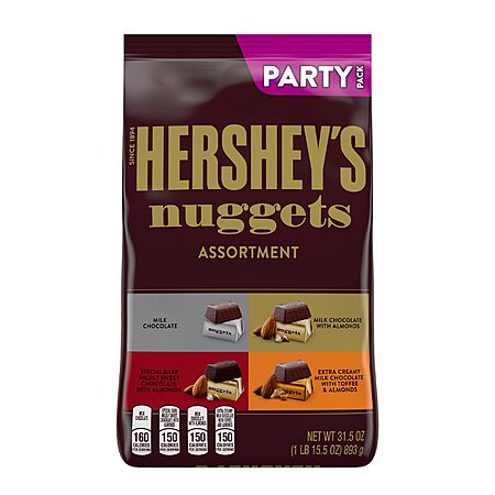 Amazon [amazon.com] has 31.5-Oz Hershey's Nuggets Assorted Chocolates Party Pack for $12.58 - 15% when you checkout via Subscribe & Save - 5% when you checkout via Subscribe & Save = $10.06. Shipping is free w/ Prime or on $35+.