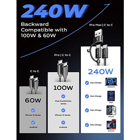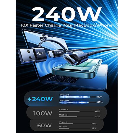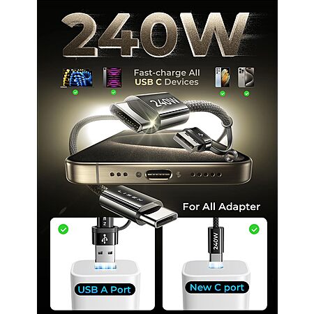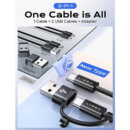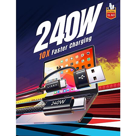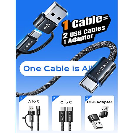 2-Pack 6.6' LISEN 240W Fast Charging USB-C to USB-C Braided Cable w/ USB-A Adapter $6.50 + Free Shipping w/ Prime or $35+