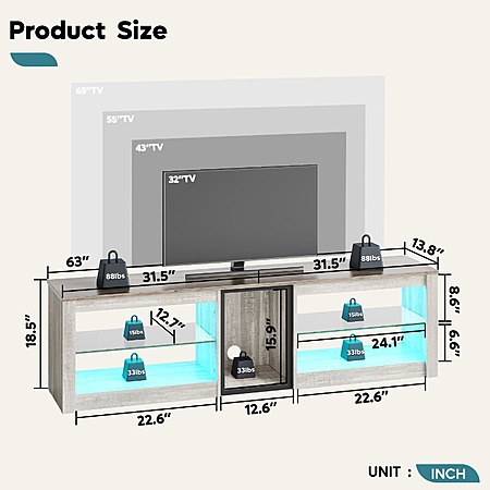 63" Bestier 5-Shelf Entertainment Center w/ LED Lights (Fits Up to 70" TVs) $116 + Free Shipping