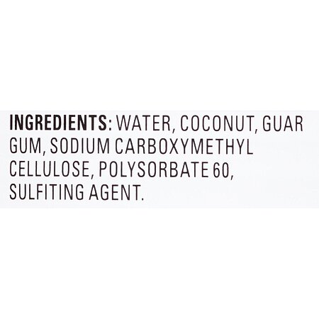 Water, Coconut, Guar Gum, Sodium Carboxymethyl Cellulose, Polysorbate 60, Sulfiting Agent.
