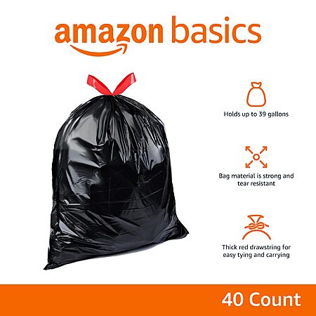 40-Count 39-Gallon Amazon Basics Lawn & Leaf Drawstring Trash Bags $9.05 w/ S&S + Free Shipping w/ Prime or on $35+