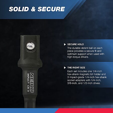 NEIKO 00244A 1/4-Inch Hex to 1/4, 3/8, 1/2-Inch drive Socket Adapter set, $6.90