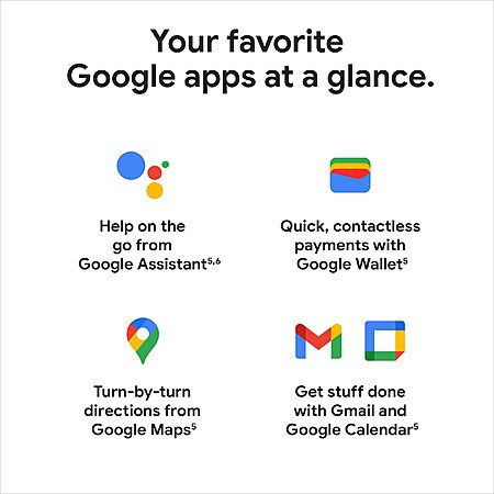 Save time with things like Google Wallet for contactless payments, turn-by-turn directions using Maps, and event notifications from Calendar[5]