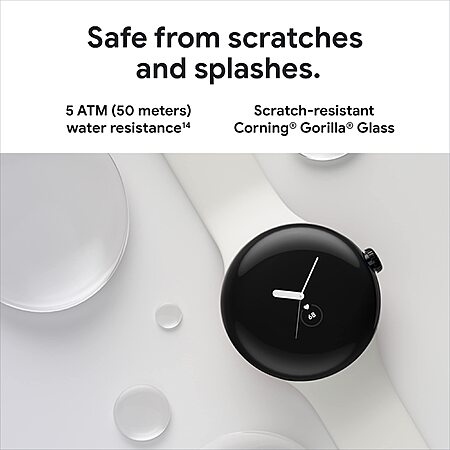 Made with scratch-resistant Corning(R) Gorilla(R) Glass, the fitness watch can withstand up to 5 ATM (50 meters) water resistance[14]