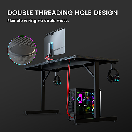 Cable Management System: The desk features a built-in cable management system that helps keep cables and cords organized and out of the way. This not only reduces clutter but also makes it easier to access and switch out gaming equipment.