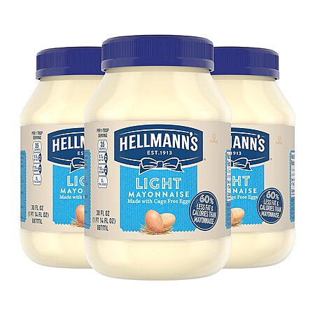 Amazon: Hellmann's Light Mayonnaise, 30 Ounce Jars of Mayo - Pack of 3 - Made w/Cage-Free Eggs, Lowest Ever, Less w/15% SS + Free Prime Shipping $8.67