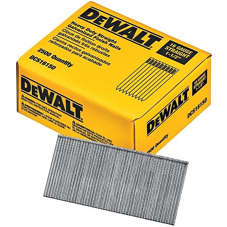 2500-Count DeWALT 1 1/2" 16GA Heavy Duty Galvanized Finish Nails (DCS16150) on sale for