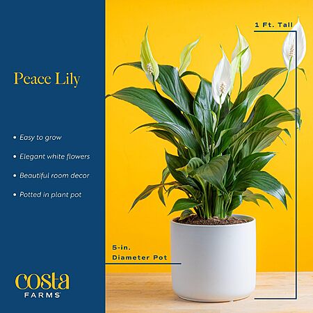 Model: Costa Farms Peace Lily Plant, Live Indoor Houseplant with Flowers Potted in Indoors Garden Plant Pot, Air Purifying Potting Soil, Birthday, New House Gift, Home and Room Decor, 15-Inches Tall