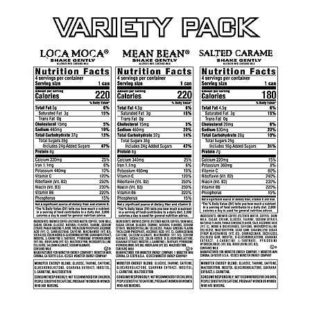 Model: Monster Energy Java Monster Variety Pack, Java Monster Mean Bean, Java Monster Loca Moca, Java Monster Salted Caramel, Coffee + Energy Drink, 15 Ounce (Pack of 12)