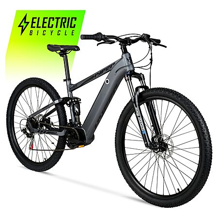 Model: Hyper E-Ride Electric Bike, 29inch Wheels, Men’s MID DRIVE MTB Dual-Suspension, 36 Volt, 20+ Mile Range, Matte Grey