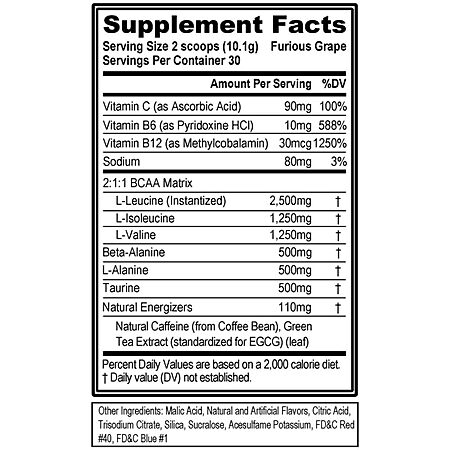 Model: EVL BCAAs Amino Acids Powder - BCAA Energy Pre Workout Powder for Muscle Recovery Lean Growth and Endurance - Rehydrating BCAA Powder Post Workout Recovery Drink with Natural Caffeine - Furious Grape