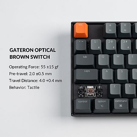 • Gateron Optical Switch: Durable Gateron optical brown switch with a 50 million keystroke lifespan to provide an unrivaled tactile responsiveness. Classic clicky tactile or quicker response, for office or personal gaming, the Gateron optical switch is the way to choose.