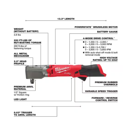 Model: Milwaukee M12 FUEL 1/2" Right Angle Impact Wrench with Friction Ring