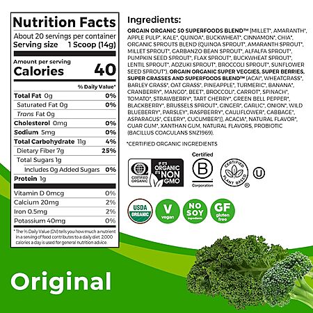 Orgain Organic Greens Powder + 50 Superfoods, Original - 1 Billion Probiotics for Gut Health, Antioxidants, Vegan, Plant Based, Gluten Free, Non GMO, Dairy Free Juice $10.99
