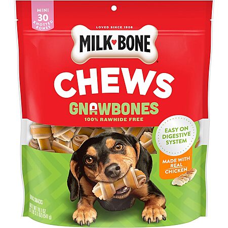 Milk-Bone Chews GnawBones Mini Knotted Bones Dog Treats (Chicken): 16-Count $6.25, 30-Count $10.15 w/ S&S + Free Shipping w/ Prime or on $35+