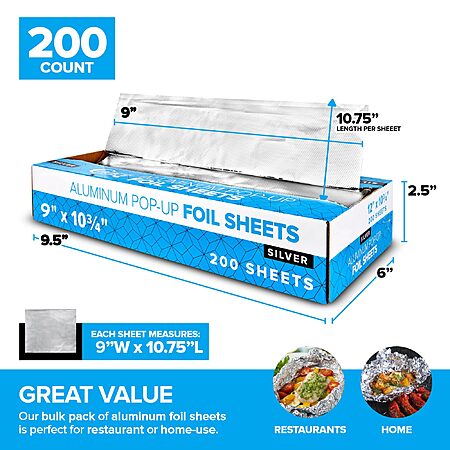 200-Count 12" x 10.75” Stock Your Home Pre-Cut Pop-Up Aluminum Foil Sheets