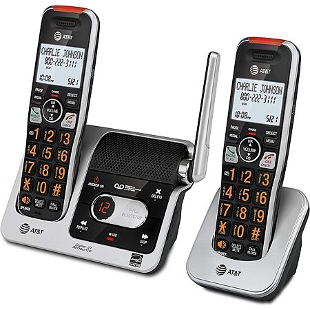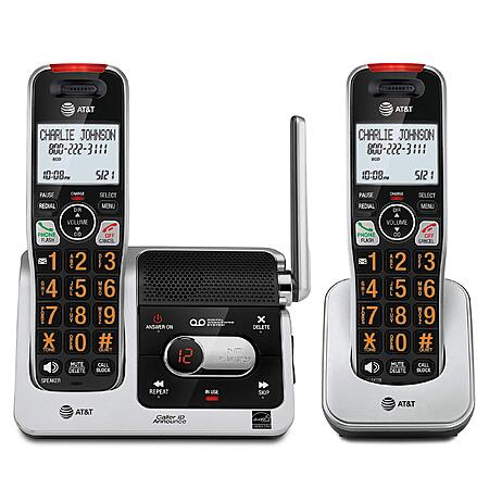 Model: AT&T BL102-2 DECT 6.0 2-Handset Cordless Phone for Home with Answering Machine, Call Blocking, Caller ID Announcer, Audio Assist, Intercom, and Unsurpassed Range, Silver/Black