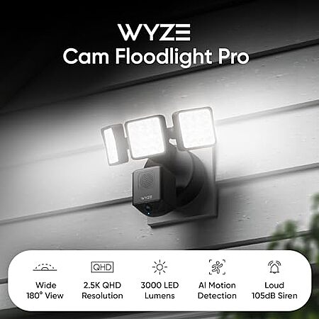 WYZE Floodlight Camera Pro, 3000-Lumen LEDs, 180° Wide View, 2K HD Outdoor Security Camera, Motion Detection, 105dB Siren, Cloud & Local Storage, Color Night Vision, for - $99.99