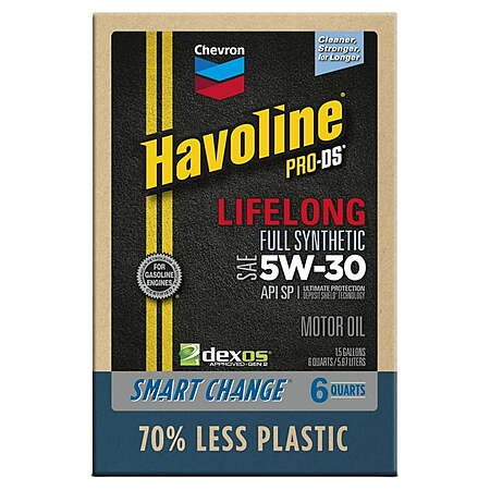 Chevron Havoline Lifelong Full Synthetic Motor Oil 0W-20 5W-20 5W-30 6 Quart Smart Change Box $24.97