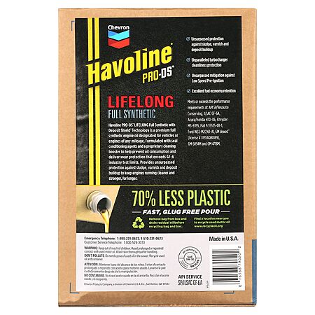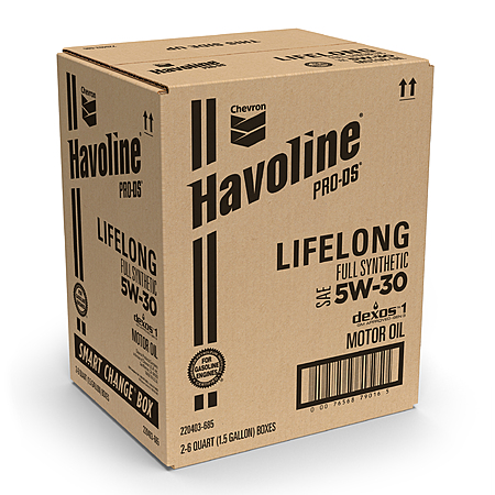 Chevron Havoline Lifelong Full Synthetic Motor Oil 6 Quart Smart Change Box