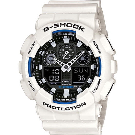 Casio Men's GA-100 Series G-Shock Quartz 200M WR Shock Resistant Watch White/Black. Plastic Band - $60