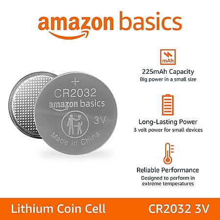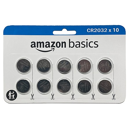 Amazon Basics 10-Pack CR2032 Lithium Coin Cell Battery, 3 Volt, Long Lasting Power, Mercury-Free $7.72