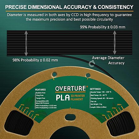 OVERTURE 3D via Amazon has 1kg 1.75mm OVERTURE PLA 3D Printer Filament (Black) on sale for $13.98 - 10% off when you checkout via Subscribe & Save = $12.58. Shipping is free w/ Prime or on $35+ orders.Thanks to Community Member BluePassenger708 for sharing this deal.