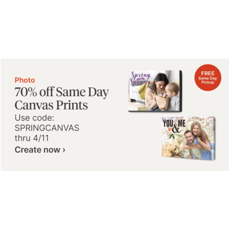 - 70% off Same Day Canvas Prints | Enter code SPRINGCANVAS at checkout thru April 11