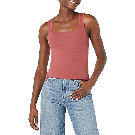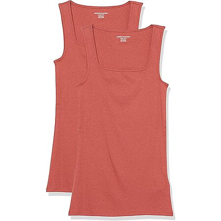 2-Pack Amazon Essentials Women's Slim Fit Square Neck Tank (Brick Red)
