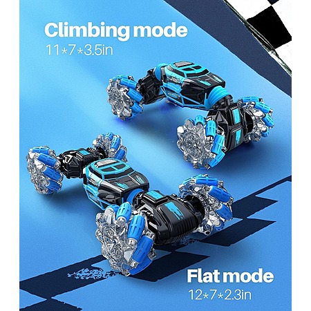 - 4WD gesture sensing rc car uses 4 mecanum tires, which allows it to move in all directions, including moving forward backward, left and right drifting and 360° spinning. And when it runs into obstacles you don't even need to go over and help it, as the car can flip over and keep running.