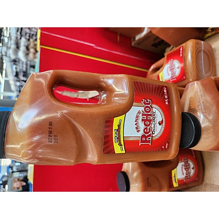 Frank's RedHot Original Cayenne Pepper Sauce is made with a premium blend of aged cayenne peppers to add a kick of heat and whole lot of flavor to your favorite foods. Bring the heat to wings, chicken sandwiches, buffalo chicken dip, eggs -- put that $#!t on everything! Our sauce is essential at tailgates, parties, cookouts, you name it. Frank's Hot Sauce is a recipe that has been tantalizing taste buds since 1964, and it's not stopping anytime soon. This Frank's RedHot Original Cayenne Pepper Hot Wing Sauce is in a Plastic jug that is 64 fluid ounces. Store this shelf-stable item at an ambient temperature.