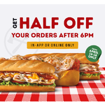50% Off Orders Placed After 6PM (minimum $3 purchase). Must use online ordering at the