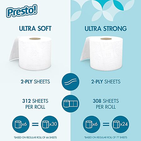 $20.84 w/ S&S: 24-Count Presto! 313-Sheet Mega Roll 2-Ply Toilet Paper (Ultra Soft)