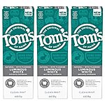 Tom's of Maine Natural Luminous White Toothpaste with Fluoride, Clean Mint, 4.0 oz. 3-Pack for $11.59 -