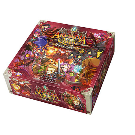 • Arcadia Quest: Inferno is a standalone game, and also compatible with the original Arcadia Quest. In it, players build their guilds with 3 Heroes from a roster of 12, each of whom has their own unique abilities. As they progress through the branching campaign, fighting their way down against the demons of Inferno, the Heroes earn new weapons, abilities, and magical items! Players use this loot in combination with their special abilities to become the most powerful guild in Arcadia.