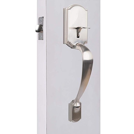 Castle Satin Nickel Entrance Door Handleset with Hartford Interior Knob $20. Reg $50.