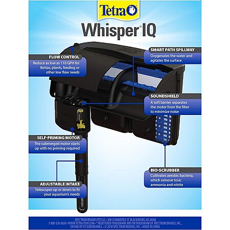 300GPH Tetra Whisper IQ Power Aquarium Filter for 60-Gallon Tank