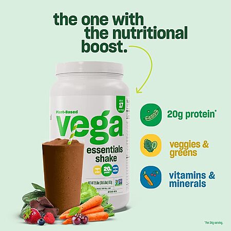 Vega Essentials Plant Based Protein Powder, Chocolate, 1.4 lbs for $37.39 -