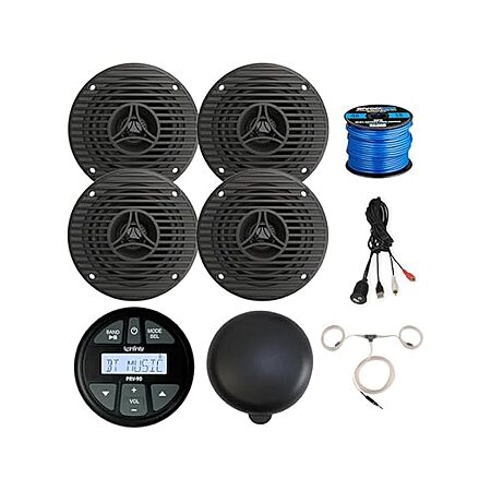 Woot! has the New Infinity Milennia PRV90 Gauge Style Bluetooth Marine Stereo Media Receiver Bundle - 3.5" Full Range All Weather Boat Speakers w/Wire (Qty 4), Cover, USB/AUX Adapter, Antenna w/Extension for $89.99. Shipping is free with Amazon Prime, otherwise $6 per order.