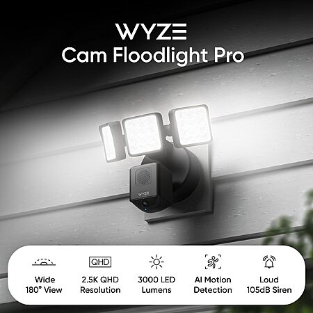 Model: WYZE Floodlight Camera Pro, 3000-Lumen LEDs, 180° Wide View, 2K HD Outdoor Security Camera, Motion Detection, 105dB Siren, Cloud & Local Storage, Color Night Vision, for Home Surveillance, Wired