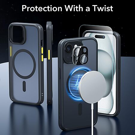 Dexterifytech US Store via Amazon has ESR 5-in-1 MagSafe Compatible Phone Case Set for iPhone 15/15 Pro/15 Plus/15 Pro Max (Frosted Black) for $13.99 - $1.70 off w/ 5% off coupon - $6.80 off w/ code BPL4KLLZ = $6.34. Shipping is free w/ Prime or $35+ orders.