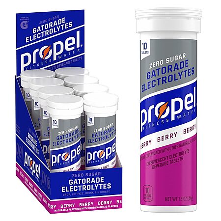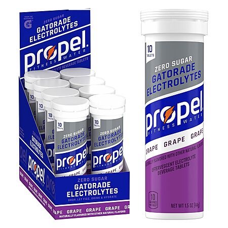 Propel Fitness Water Zero Sugar Electrolyte Tablets: 80-Count (Kiwi Strawberry or Berry) $18.90, 120-Count (Grape) $21.60 w/ S&S + Free Shipping w/ Prime or on $35+