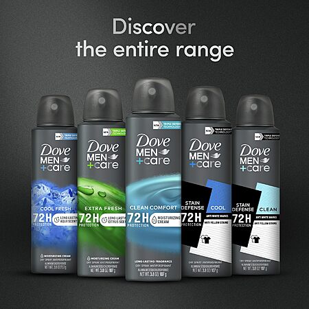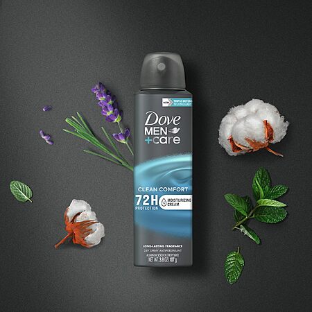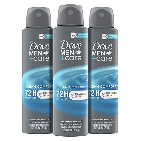 - The price for 3-Count 3.8-Oz Dove Men+Care Antiperspirant Dry Spray Deodorant (Clean Comfort) should be $18.57 - $2.79 w/ 15% off coupon - $6 w/ coupon - $0.93 w/ 5% S&S discount = $8.85. Shipping is free w/ Prime or on $35+.