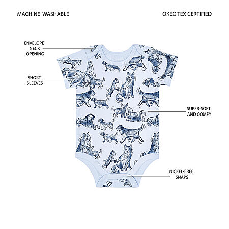 | Product Description: | Get your baby ready in style with our favorite bodysuits! Your adorable baby will feel happy and perfect all day, every day, especially during playdates, when wearing our cute and adorable bodysuits. The 5 pack bodysuits bundle from Member's Mark™ is a must-have. These bodysuits are perfect for playtime, story time, and feeding time. With short length sleeves, they are essential for keeping your baby cool and comfortable on warm days. We offer exciting color combinations, cute prints, and unique patterns with awesome graphics, making these bodysuits instant eye-catchers. They are easy to mix and match with other pieces in your baby's wardrobe. Designed with the perfect fit, our adorable styles include convenient features like overlap shoulders for easy pull-over and snap crotch at the leg opening for quick and hassle-free diaper changes. These details make life easier for moms!
