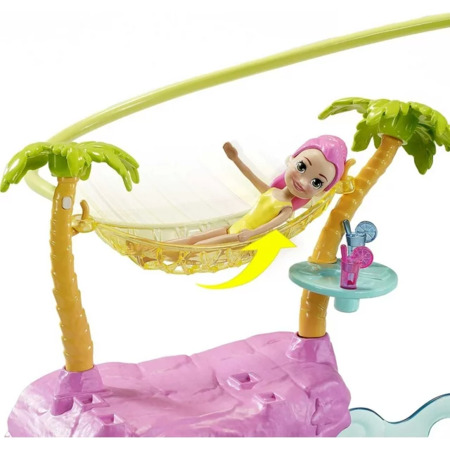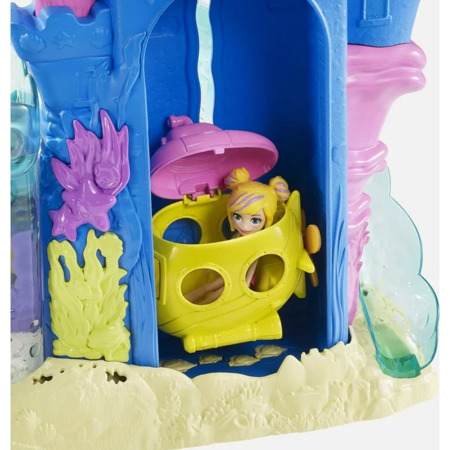 This Polly Pocket Splashin Fun Mermaid Pack Playset features water-themed activities 3-inch Polly and Margot dolls 2 mermaid outfits a surfboard snorkel and mask fins locket 2 pairs of shoes a submarine (attached) boat and more! Kids can fill the aquarium area with water (tap or bottled) and use the diving board to activate and move water in the tank. Put Polly or Margot doll in the tank with the snorkel and mask and fins or on the surfboard to ride the waves. There is also a submarine that pops out of the sandcastle and the top opens to fit Polly or Margot doll inside the submarine! Also ride the hang glider zipline slide down the slide swing on the seahorse swing and more! Take the zippy boat for a cruise too. Colors and decorations may vary. Dolls cannot stand alone. Makes a great gift for ages 4 years old and up.