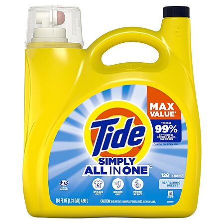 168-Oz Tide Simply Liquid Laundry Detergent (Refreshing Breeze) + $9.50 Amazon Credit