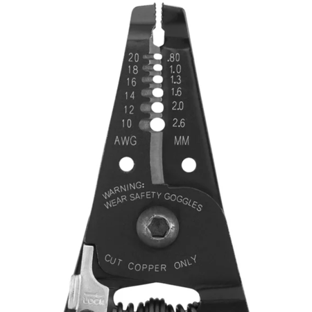 The HART 6" Wire Cutter is a great tool for small scale electric use. This wire stripper has the capacity to strip 10-20 AWG wire. It also features a comfort-grip, non-slip handles for added control and easy of use. The locking mechanism provides easy, one-handed use and integrated holes allow for looping and bending wire. Always remember to wear safety glasses when using this tool. This product is covered by HART's Limited Lifetime Warranty.