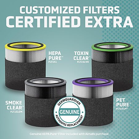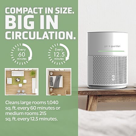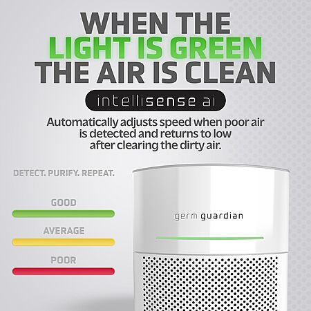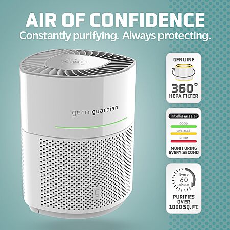 Save 31% $99.99 -> $69.99 GermGuardian Airsafe Intelligent Air Purifier, Air Quality Sensor, 360˚ HEPA Filter, Large Room up to 1040 Sq. Ft., Captures 99.97% of Pollutants