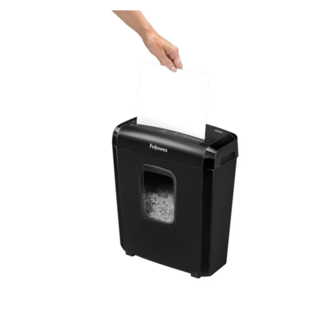 Fellowes 6M5 Six Sheet Micro Cut Paper shredder features the patented Safety Lock, which disables the shredder for added safety protection. The 6M5 paper shredder shreds paper continuously for up to 5 minutes before a cool down period is needed allowing you to complete medium-sized shredding jobs in one sitting. It also features a 3.5-gallon bin with lift-off head and keeps shreds contained and workspaces clean. Ideal for use in the small office, home office, school, or wherever you would like to conveniently shred papers.
