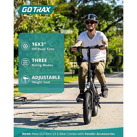 Gotrax S3 Electric Bike, 16x3.0 Fat Tire Electric Bicycle Adults, 750W Peak Motor, Max Range 25 Miles, Up to 20 Mph, Removable Battery, Adjustable Seat $476